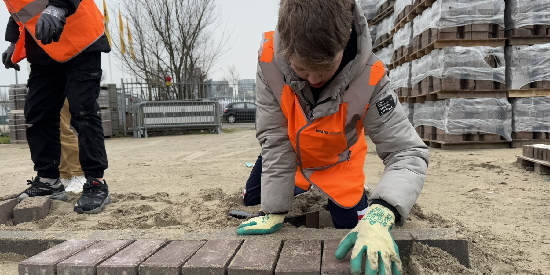 Na een korte introductie over wie we zijn en wat we doen, doken de leerlingen direct de praktijk in. We hadden drie verschillende workshops klaargezet: een stuk straatwerk maken, een rioolaansluiting realiseren en een rollaag leggen. Onder begeleiding van onze medewerkers konden de leerlingen zelf ervaren wat er allemaal bij deze werkzaamheden komt kijken. De groepjes rouleerden, zodat iedereen de kans kreeg om alles uit te proberen.