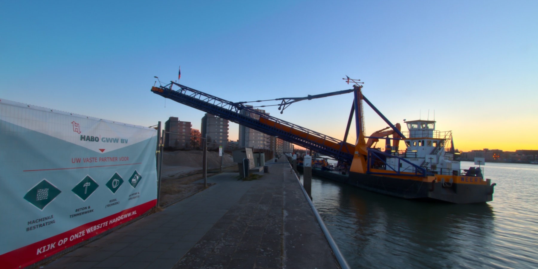 Bouwen langs het water betekent uiteraard ook zoveel als mogelijk transport via het water. Hiermee voorkomen we overbodige hinder van af en aanrijdende vrachtwagens. In totaliteit is er voor het bouwrijp maken van het plangebied ca. 40.000 m3 zand nodig.