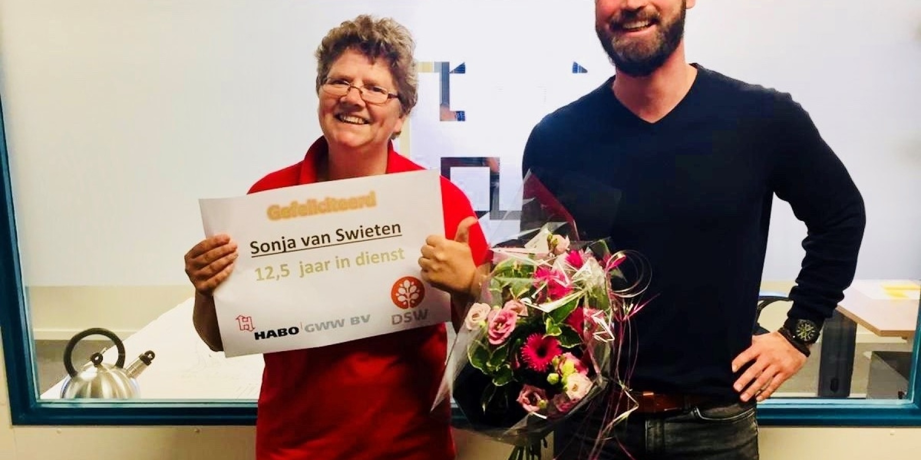 Wij feliciteren Sonja met haar jubileum en hopen dat ze nog lang en met veel plezier bij ons werkt.