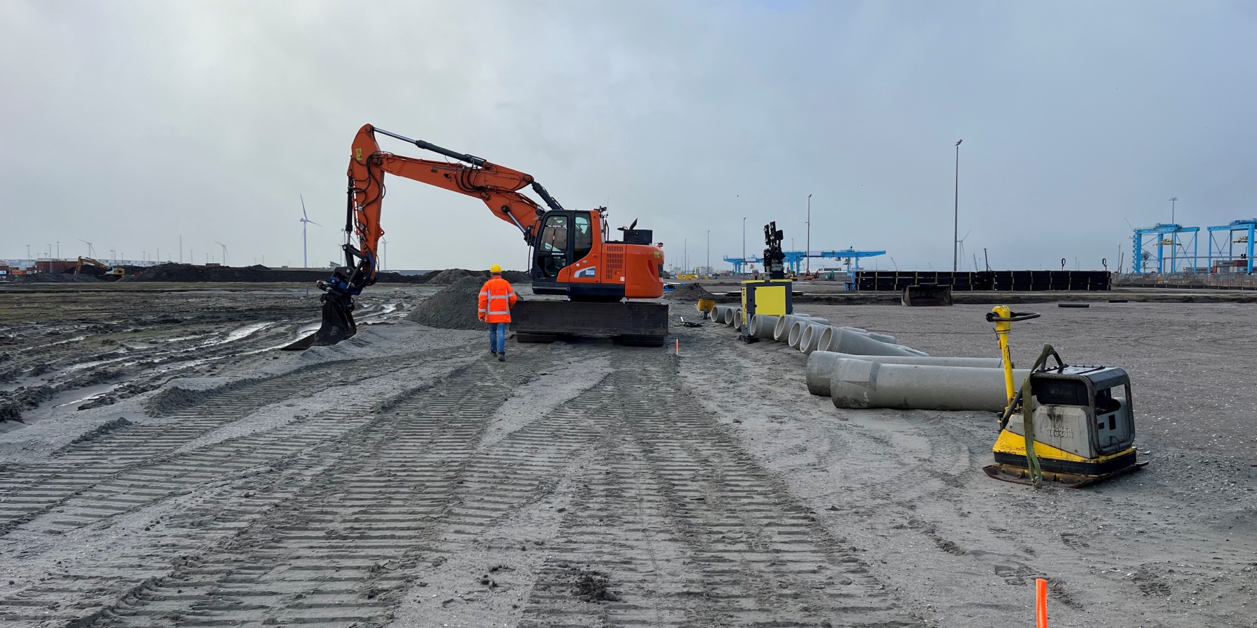 We zijn gestart met de aanleg van het rioolsysteem voor de aanleg van een nieuw converterstation van TenneT TSO B.V op Maasvlakte 2, Rotterdam.