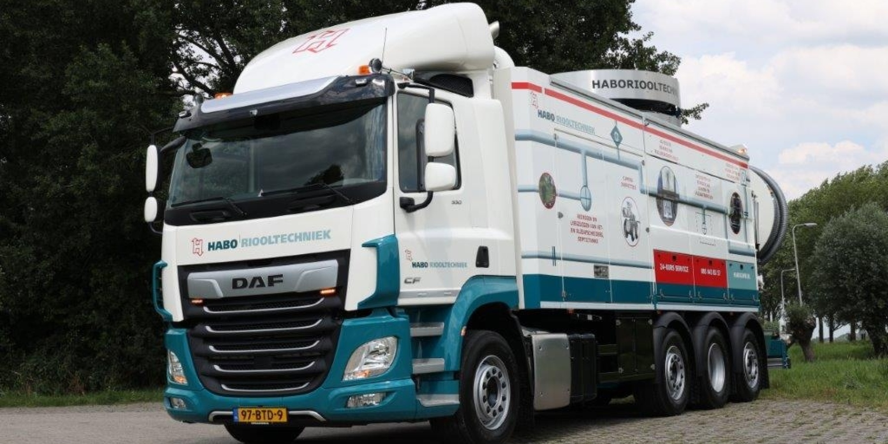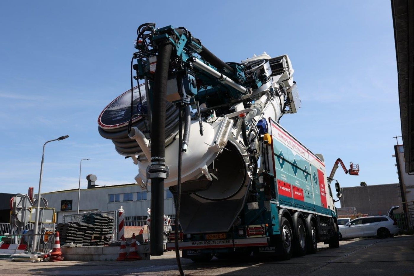 Ons wagenpark is uitgebreid met een gloednieuwe Recycler (DAF CF 530). Dit nieuwe voertuig, een zuigwagen en spuitwagen in één, is voorzien van een Euro 6 motor met 530 PK en een Muller Canalmaster opbouw. Deze zetten wij voornamelijk in vanuit onze afdeling Riooltechniek gevestigd in Alphen a/d Rijn.