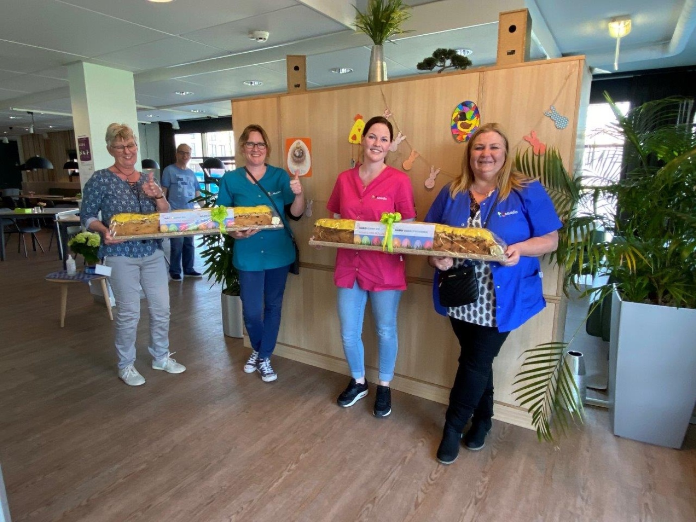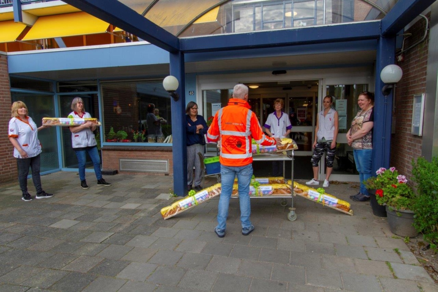 Dit jaar hebben wij onze medewerkers zoals vanouds verwend met een paasstol maar de relaties waren moeilijk te bereiken doordat velen thuis aan het werk waren op verzoek van de Minister-president behalve zoals we op het nieuws en in onze omgeving te horen kregen de mensen in cruciale beroepen zoals de zorgmedewerkers, de hulpverleners zoals politie, brandweer e.d. en de vuilophaaldiensten dus hebben wij bedacht deze mensen in het zonnetje te zetten en een beetje te verwennen.