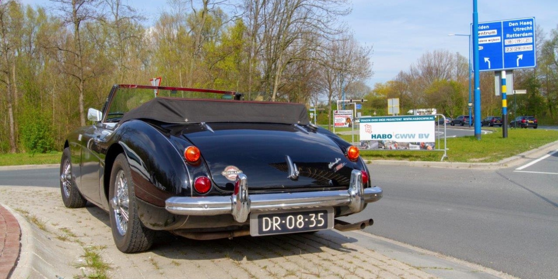 De Dorpsstraat in Zoetermeer is bezig met een stevige opmars. Onderdeel daarvan is een nieuwe rotonde met betere bewegwijzering. Deze rotonde is op 5 april feestelijk geopend door wethouder J. Iedema en J. Boonekamp, die speciaal voor deze gelegenheid arriveerden in een mooie oldtimer, een Austin-Healey Mark III. Na een toost op de nieuwe toekomst werd er met alle enthousiaste aanwezigen een groepsfoto gemaakt op de nieuwe rotonde.