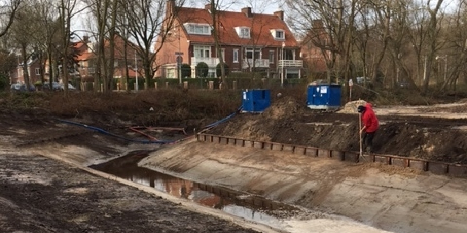 In opdracht van de gemeente Den Haag (DSO) voeren we werkzaamheden uit op het voormalige HALO-terrein. Op dit moment zijn we bezig met het verleggen van de watergang.