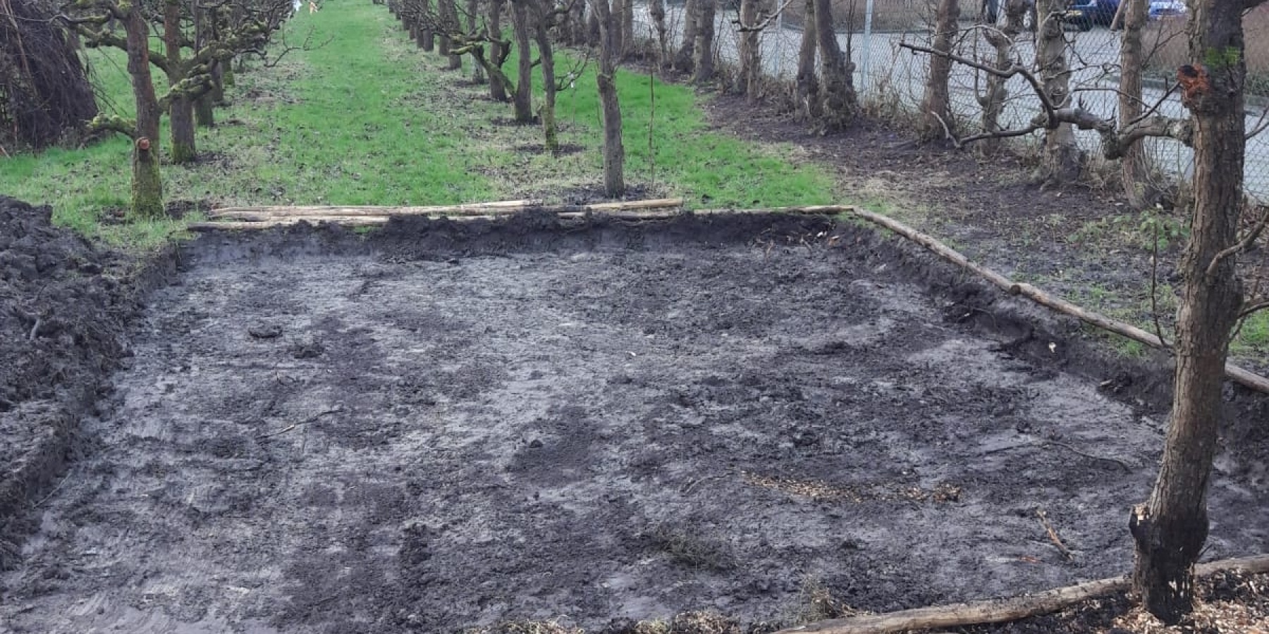 Nu vraag je je misschien af, wat komt daar dan? Onze vrijwilligers van bouw en onderhoud gaan hier een overkapping bouwen waarin gereedschap, onze bakfiets en aanhanger kan worden opgeslagen. Zo staan deze spullen voortaan droog.