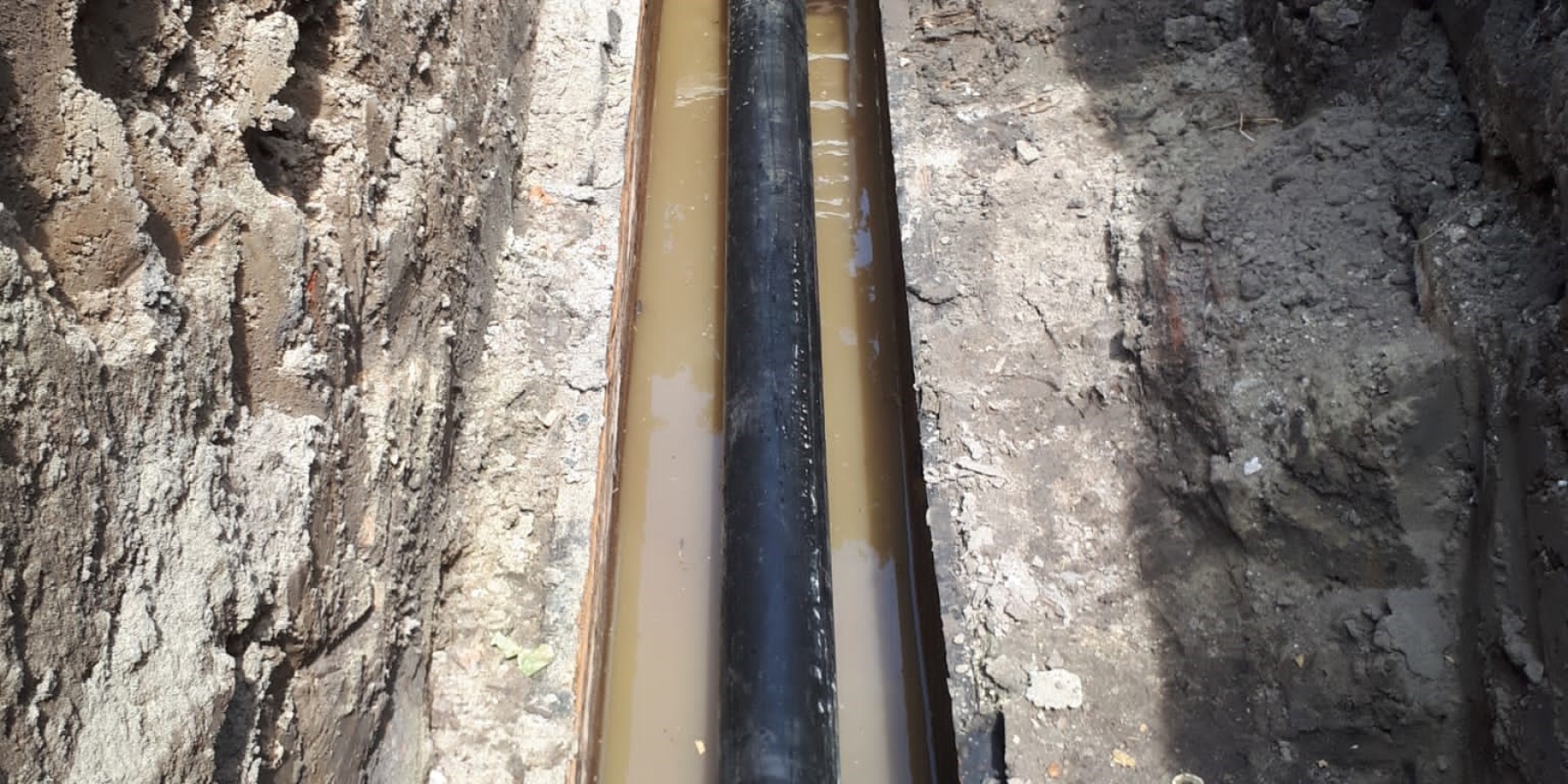 Na het aanbrengen van de nieuwe PE-leiding, werden de hardhouten delen hersteld en werden de gegraven sleuven hersteld.